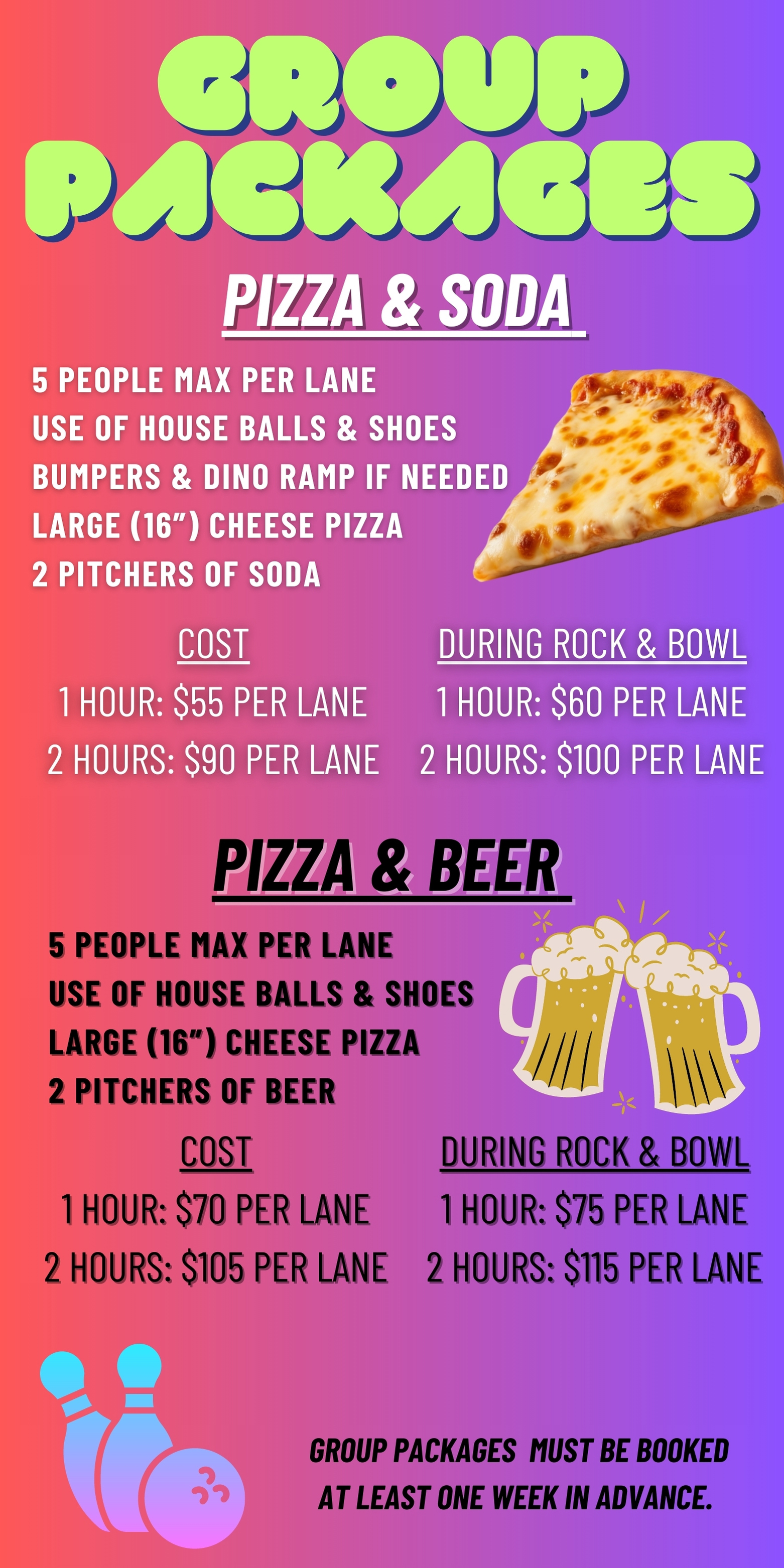 ALL PARTIES AND RESERVATIONS SUBJECT TO LANE AVAILABILITY. CLICK HERE FOR PRINTABLE FLYER.